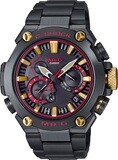 The MRG-B2000B-1A4 takes it to the next level with inspiration from akazonae — the color of the crimson armor worn by elite samurai and associated with gallantry and valor. The G-SHOCK and MR-G logos on the bezel are inlayed with this traditional color of boldness, and it is also used for dial components. The timepiece also layers in the red and black G-SHOCK brand colors to project a unique and timeless sense of strength. Yet function would not be outdone by style in this one-of-a-kind watch, which features radio-controlled calibration and smartphone pairing via Bluetooth® to delight even the most practical owner.