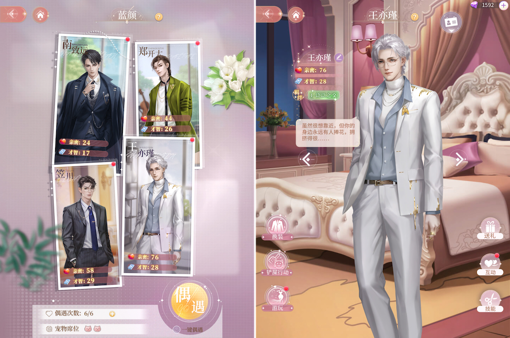 Chinese interactive story games tend to also focus on a romantic theme, just as their Western siblings. In addition to love, there can also be some kind of “success” story – the player’s avatar wants to become successful in life. For example, in Mr Love: Queen’s Choice (恋与制作人), the player wants to become a successful media producer.